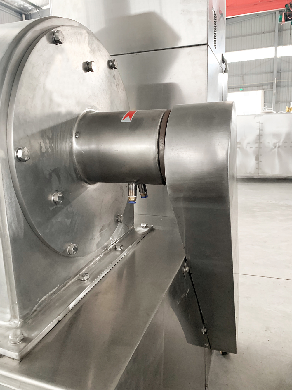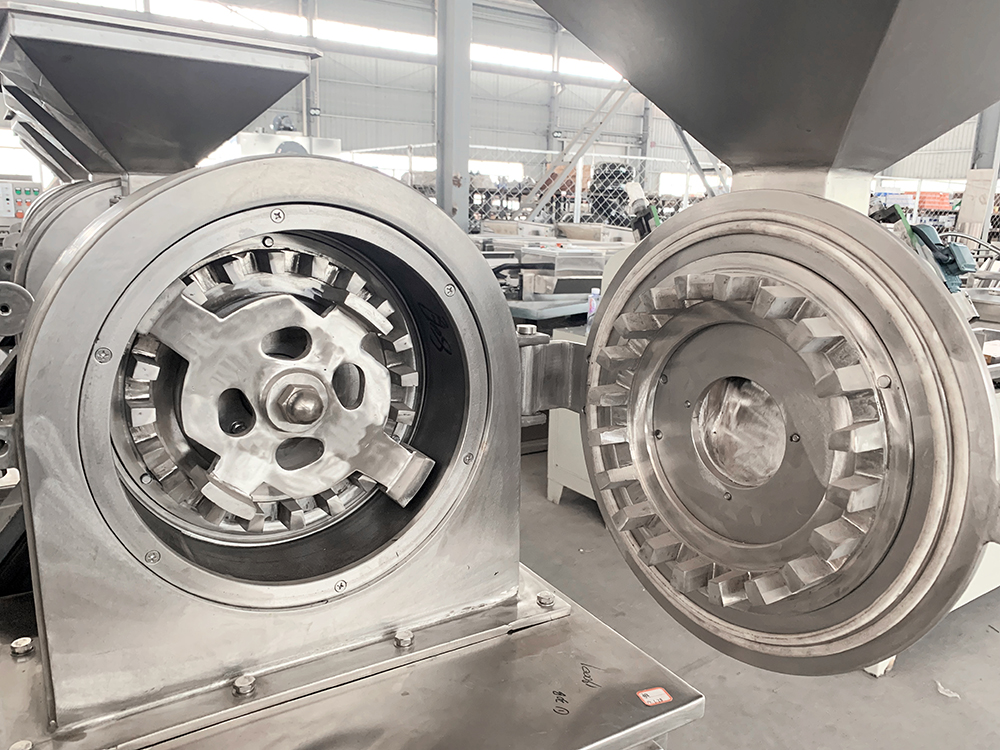 本機結(jié)構(gòu)簡單、堅固、運轉(zhuǎn)平穩(wěn),粉碎效果好、噪音低、振動小、生產(chǎn)過程中無粉塵飛揚,被粉碎物可直接由主機磨腔中排出,粒度大小通過更換不同孔徑篩網(wǎng)而控制。符合GMP要求。